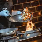 Um pequeno-almoço feito na hora é servido todas as manhãs no restaurante. Tem um restaurante georgiano com terraço. Tem o bar de grelhados que serve comida mediterrânea a 400 metros de distância.